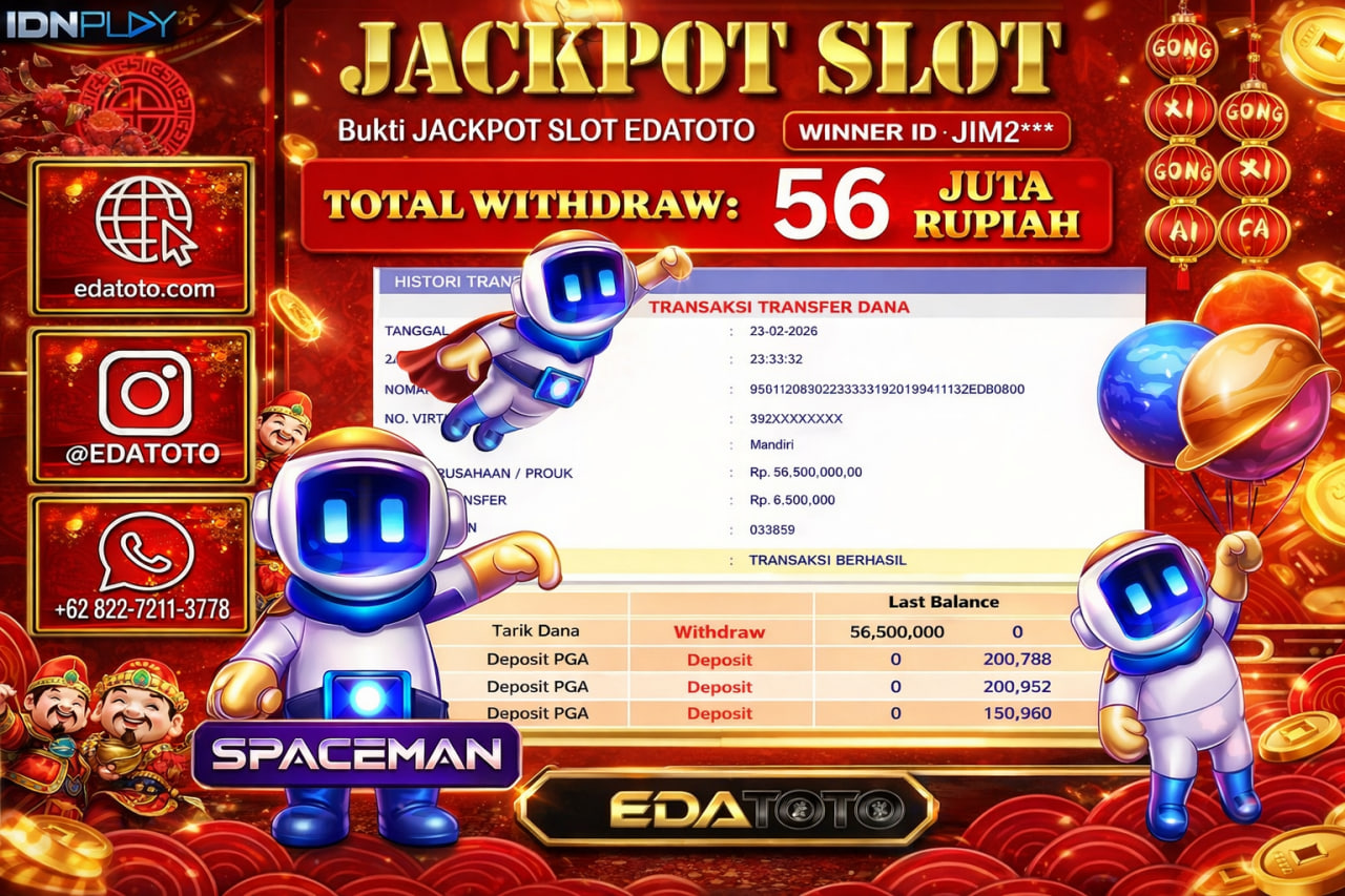 Selamat Kepada Pemilik user ID : jim2**** Hari/Tanggal : senin / 23 februari 2026 Jackpot : Rp, 58,750,000 JT Withdraw . . .